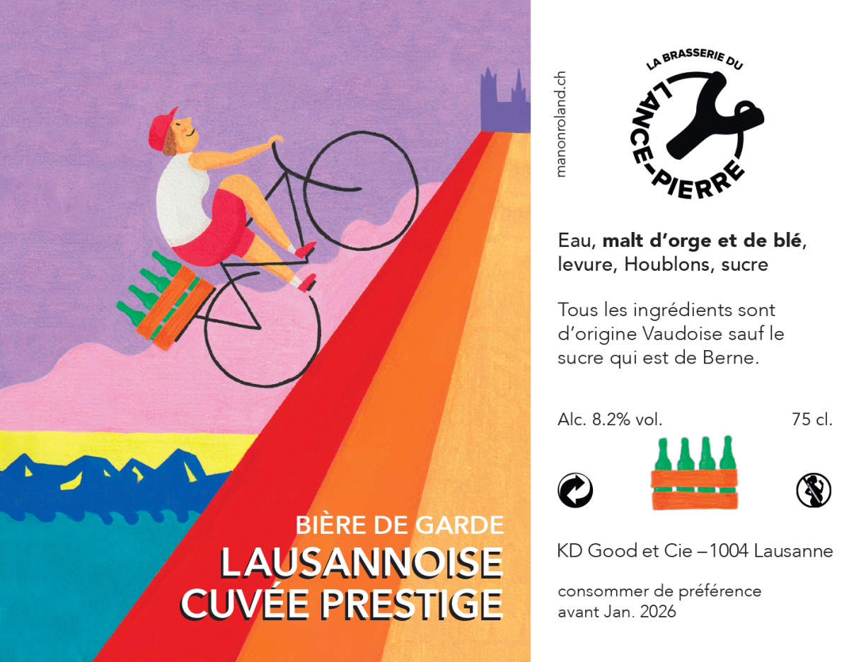 Étiquette de bière Pour la brasserie du Lance-Pierre à Lausanne, 2021.
