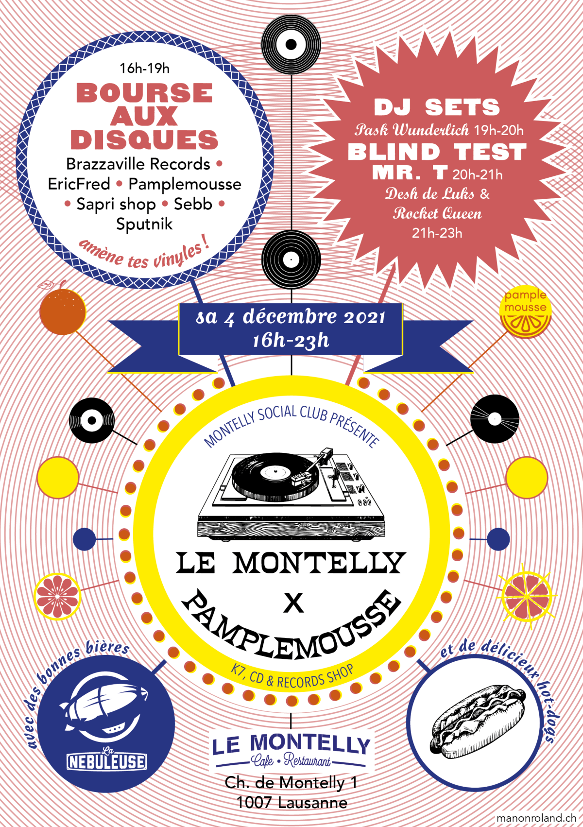 Bourse au disque Affiche pour un événement au Café de Montelly, 2021